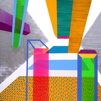 My landscapes are both idealized and impossible; they are inspired by real places but are entirely imaginary. Color, patterns and composition are the main preoccupations of my work. Ready to hang artwork. Contemporary art - ideal artwork for your living room, dining room, bedroom or hotel room, office and similar modern and stylish interiors.